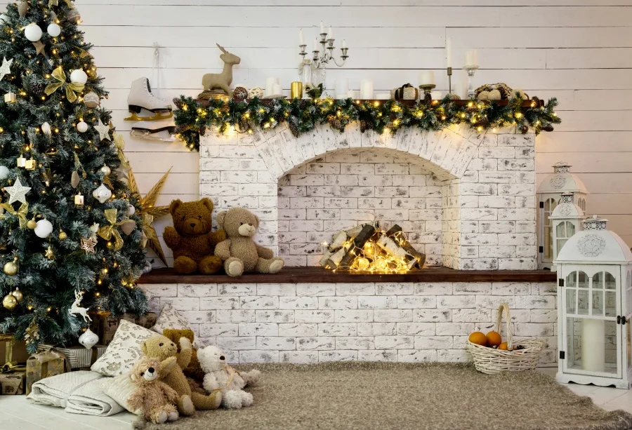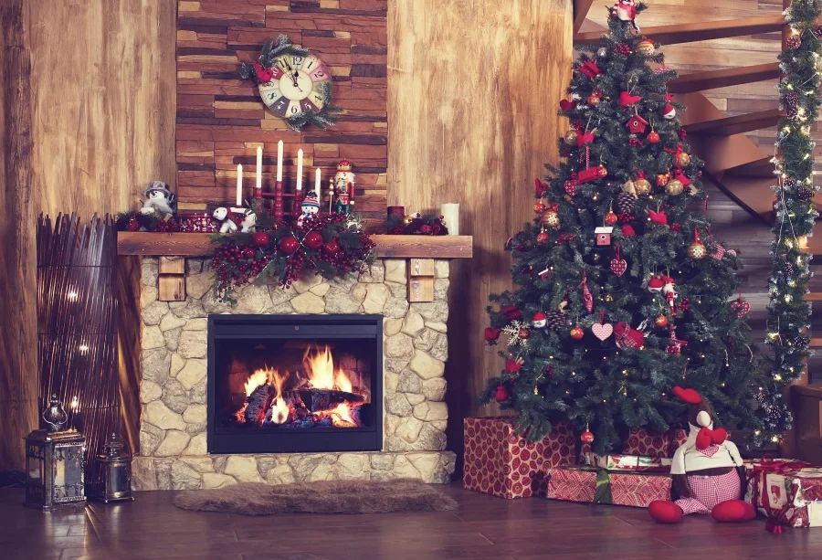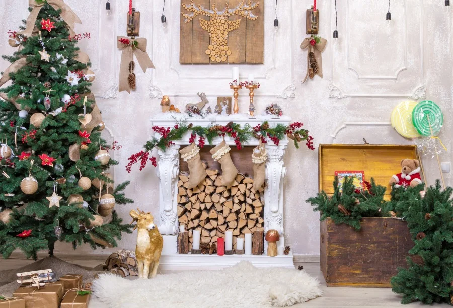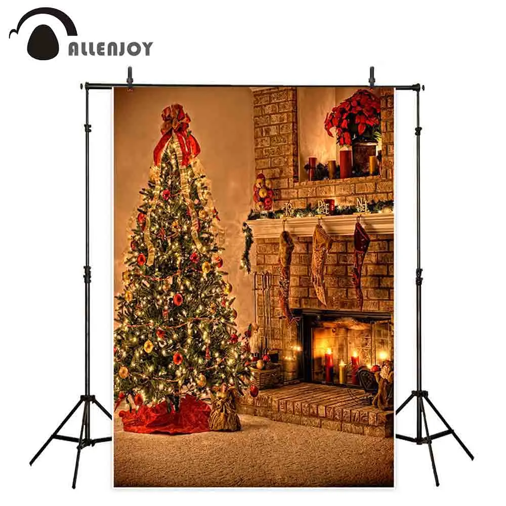 Allenjoy photography backdrop Christmas fireplace tree gift sofa background photocall photoshoot prop custom studio photobooth => sale off 20%. Click here to Buy Now!!!