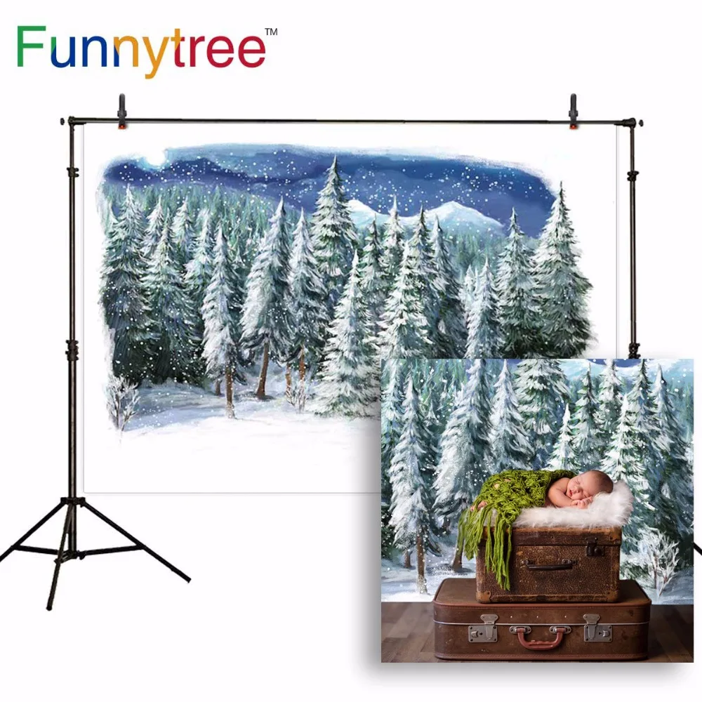 Funnytree backgrounds for photography studio Christmas winter snow oil painting pine forest backdrop photobooth photocall => sale off 25%. Click here to Buy Now!!!